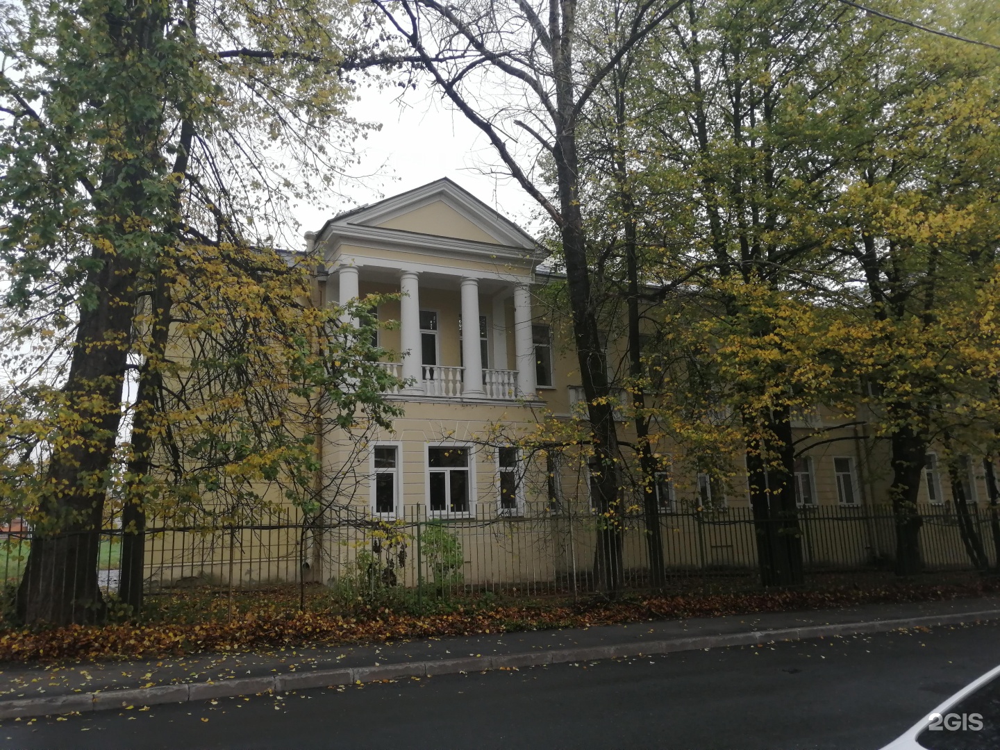 В 1834 году в усадьбе купца А. Караваева на углу Волконской ( Парковой) улицы и Павловского шоссе архитектором А. П. Гильдебрандтом был построен главный дом, жилой флигель и разбит сад.